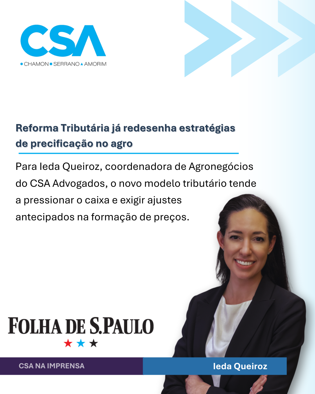 Em matéria publicada pela Folha de S.Paulo, Ieda Queiroz, advogada e coordenadora do setor de Agronegócios do escritório, analisa a possibilidade de adoção de tabelas de preços distintas a partir de 2027 como estratégia para mitigar o aumento da carga tributária, especialmente nas operações com fornecedores pessoa física.